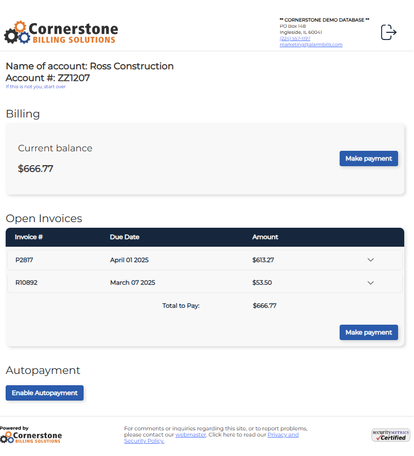 Cornerstone Billing Solutions is the leading provider of comprehensive billing services and powerful account management software for security alarm dealers nationwide. Call us at 224-577-1197 to learn how Cornerstone’s affordable and time-saving billing services, superior dealer support, and specialized, cloud-based software can help your business improve efficiency and profitability.